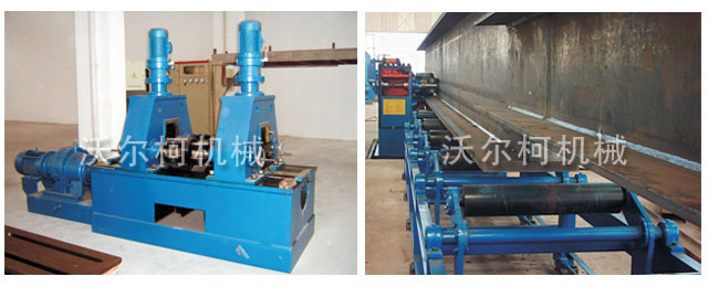 | H型鋼翼緣矯正機 | | | 該機是用于矯正焊接型鋼翼緣板變形的專用設備, 有機械、液壓矯正二大類。機械式矯正機結構簡單,操作方便可靠。液壓矯正機矯正能力大、自動化程度高,為國內首創。矯正輪與主動輥采用優質合金鋼,熱處理加工而成,經久耐用。